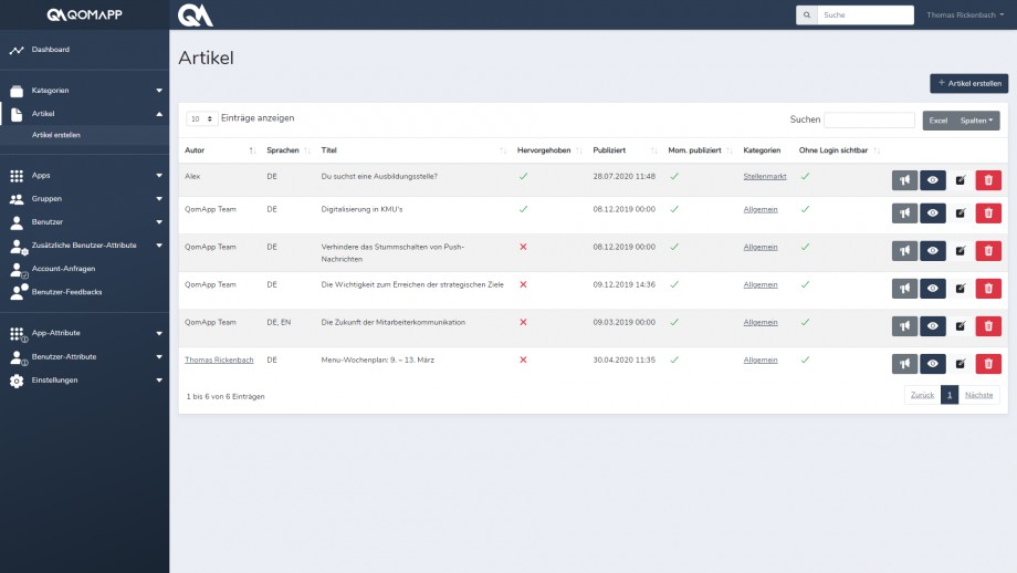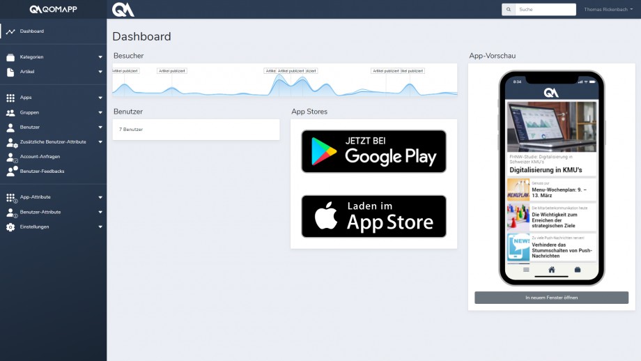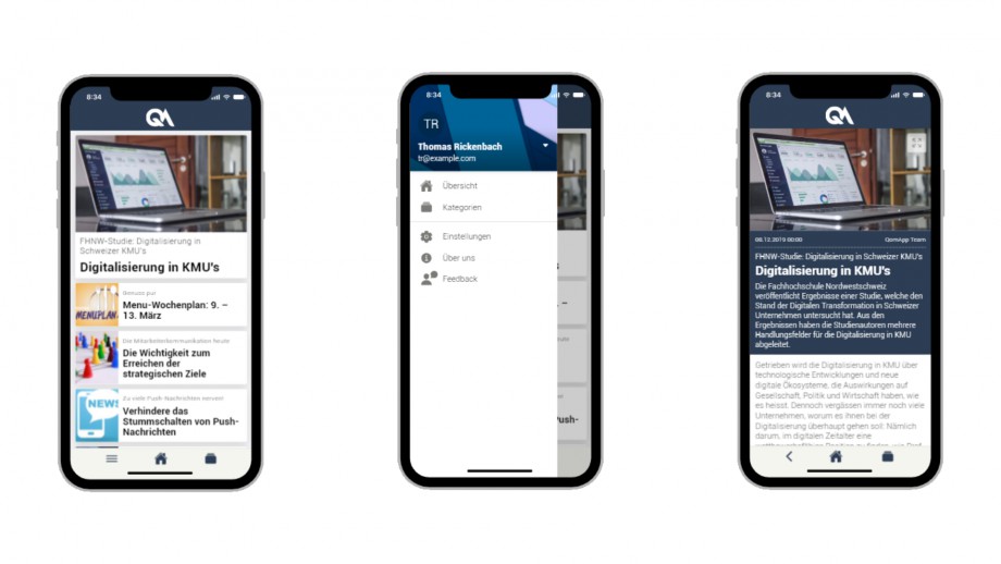 Mit der QomApp erreichen Informationen die Zielgruppe schnell, jederzeit und unkompliziert. Sie können zielgerichtete Artikel mit Bildern, Informationen, Webcasts und Pushnachrichten publizieren. In der App werden die einzelnen Artikel kategorisiert abgelegt und sind so für Ihre Mitarbeiter, Mitglieder oder Kunden schnell und jederzeit abrufbar. Ausserdem helfen Push-Benachrichtigungen dabei, die Mitarbeiter gezielt über Neuigkeiten zu informieren.